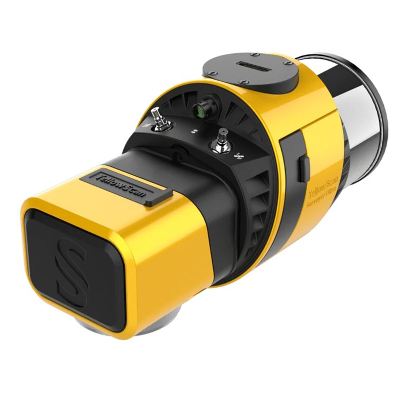 With its 360° field of view, the YellowScan Surveyor Ultra marks a new generation of YellowScan LiDAR systems integrating SBG Systems’ IMU, combined with an integrated RGB camera for colorization purposes.